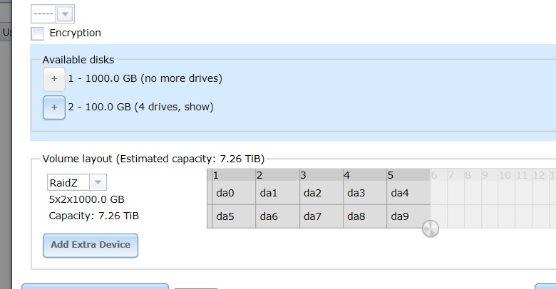 Looks like this is a big RAID6 equivalent.. it just looks kind of awkward to me lol...To improve the performance a little, I was thinking to do two RAIDz, then stripe across the two RAIDz. So I try to drag the graph, I get this: