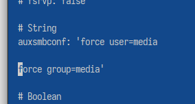 # to uncomment the aux conf section, and input your smb config, separated by newlines if there are multiple, like so: