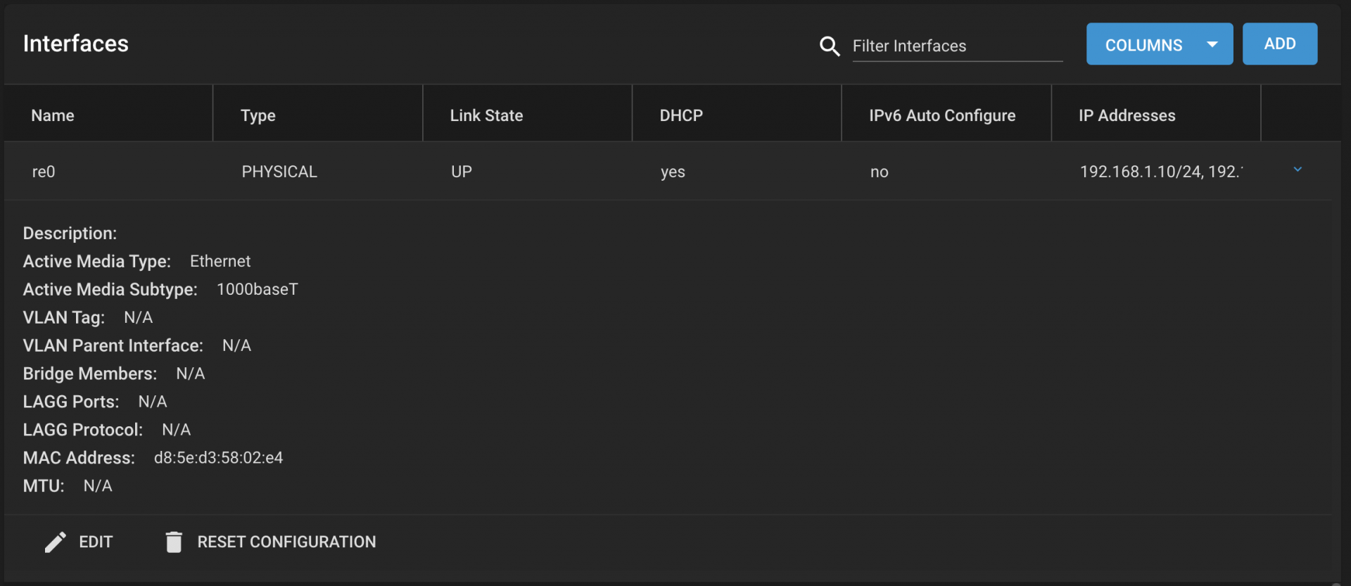 This might be easier done from the console menu. Select option 1 to configure your interface, and answer NO when prompted to delete the current configuration of the interface.