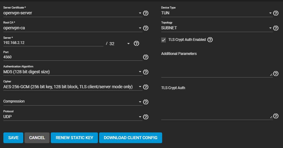Now I need to configure that builtin OpenVPN server to use the certs and keys that I have already generated.