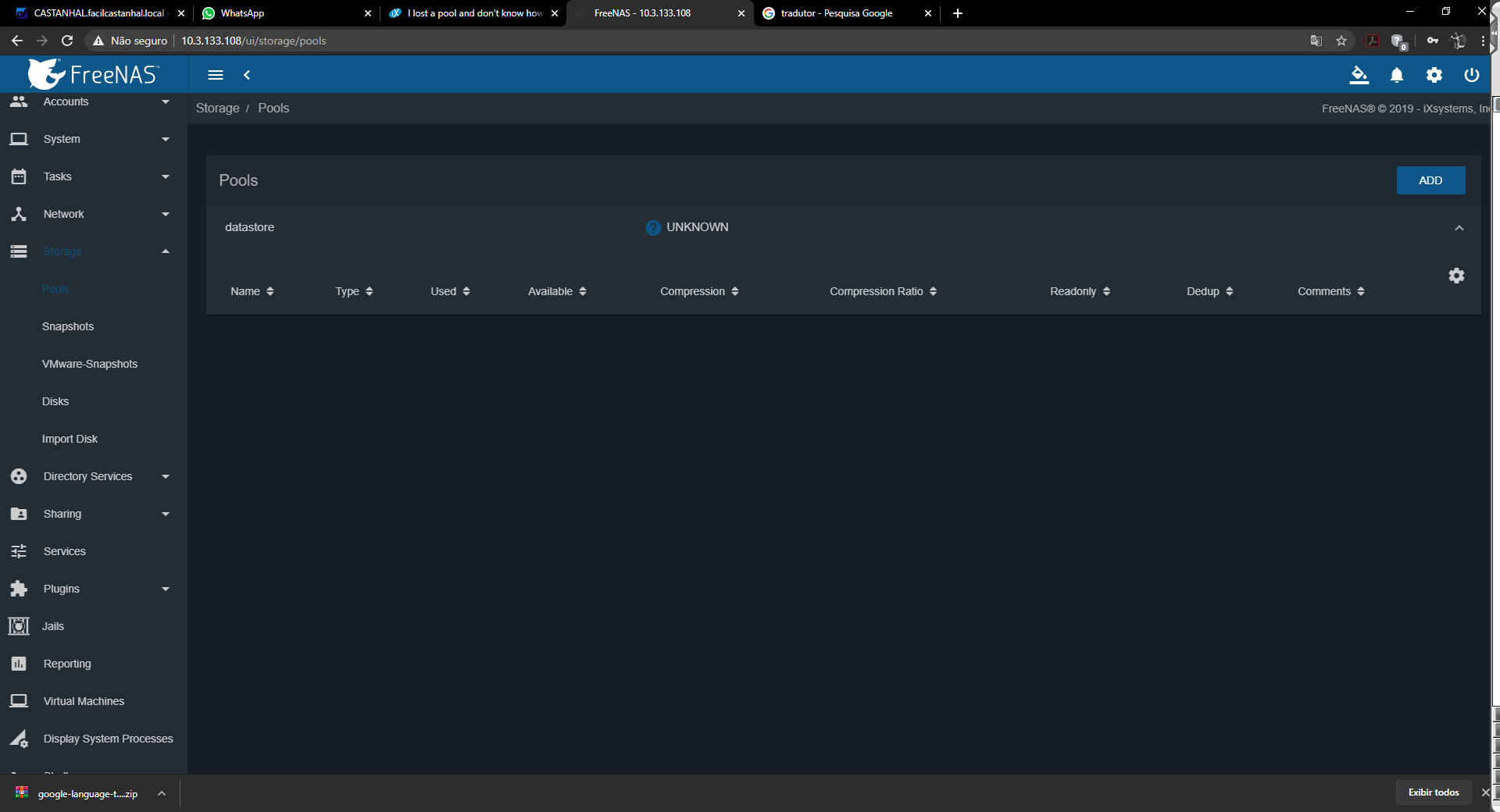 gptid/7bc6e918-0a9c-11e9-a829-000c29fb8ad9 ONLINE