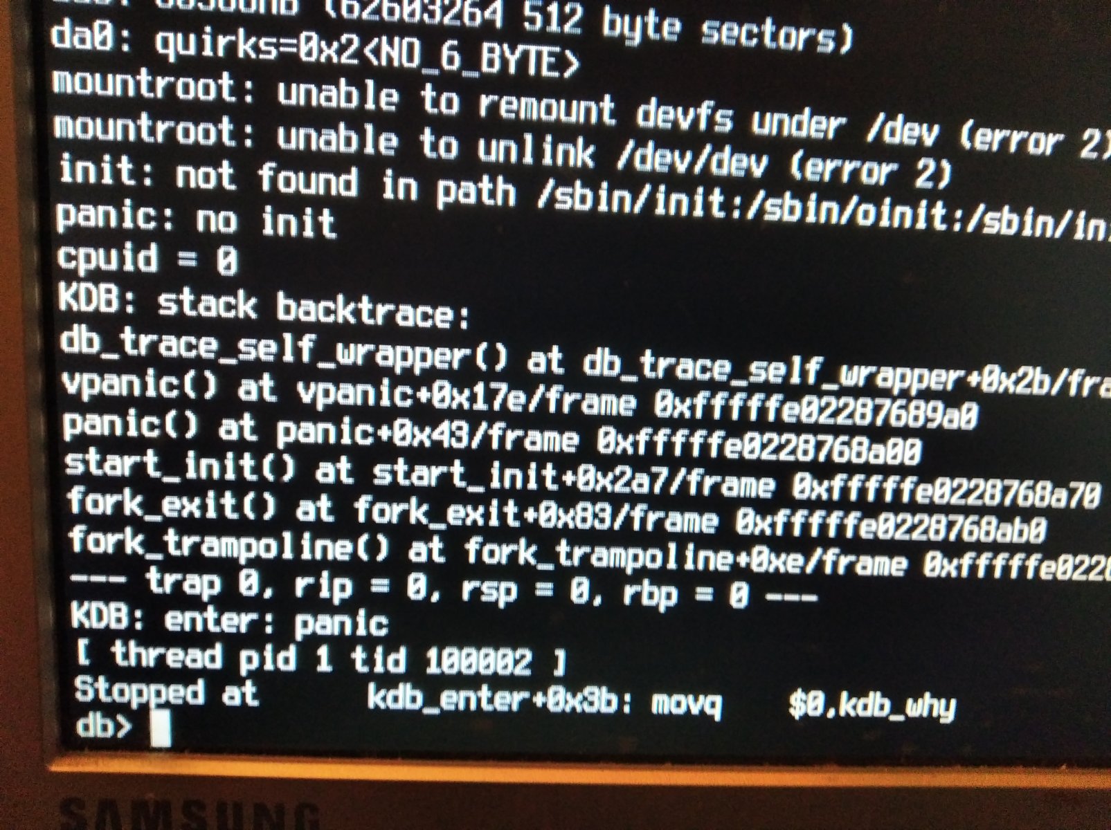I setup the usb drive to install, it gets to the intial phase I press one all starts up but then it stops I have taken a picture of the screen any ideas wuld be very helpful