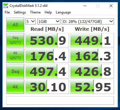 Test : 500 MiB [C: 35.8% (22.7/63.4 GiB)] (x5) [Interval=5 sec]