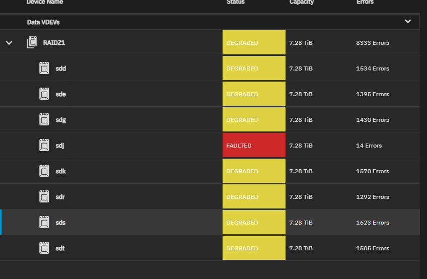 Below is 1 / 12 drives that are repporting Errors