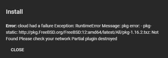 Hello, I have a problem with installing the nextcloud plugin. The system cannot install PKG file.