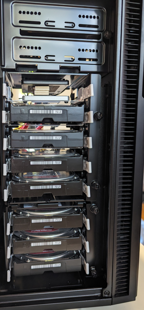 But with three Artic P14 fans pulling air in the front of the case, TrueNAS keeps giving me high temp HDD alarms at 40C. In addition to the 3 fans in front, I have two fans exhausting, one on top, one out the back. There are all the same model (static pressure optimized) which may be a mistake?