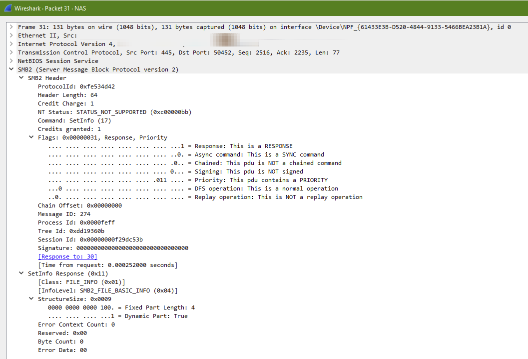 When I try to copy dirs with larger size (big files inside, like 70GB VM file) it fails with this weird error code 0x80070032. If I hit "Retry" the content gets copied but it seems fishy because if I try to delete the same directory it fails with with "Folder in Use". Checking network traffic i see "Error: STATUS_FILE_IS_A_DIRECTORY" for which MS DOCs translates to "The file that was specified as a target is a directory and the caller specified that it could be anything but a directory."