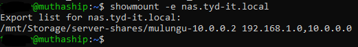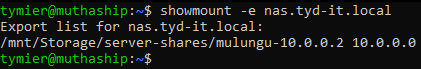 root@muthaship:/home/tymier# showmount -e nas.tyd-it.local