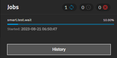 | Jobs | Displays the Jobs dialog. Click the History button to display the Tasks screen with a list of All, Active or Failed tasks or processes. | |