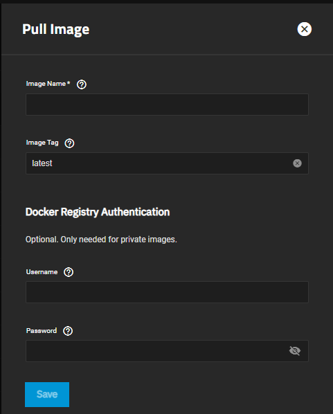 | Image Tag | Enter the specific image tag string to download that specific version of the image. The default latest pulls whichever image version is most recent. |