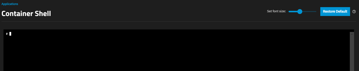 The Shell Shell button opens the Container Shell screen.