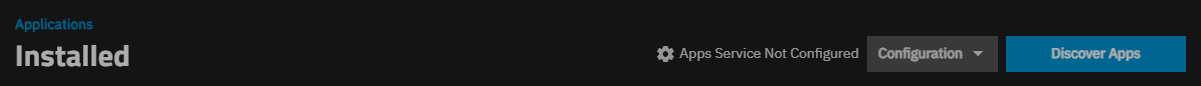 The first time you go to Apps, the Installed applications screen header shows an Apps Service Not Configured status and dialog opens prompting you to choose the pool for apps to use. You must choose the pool apps use before you can install applications. See Choose A Pool for Apps for more information.