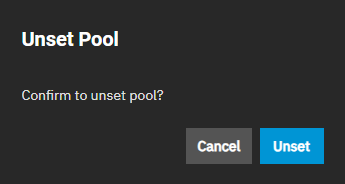 - Unset Pool shows after setting a pool for applications to use. It opens the Unset Pool dialog.