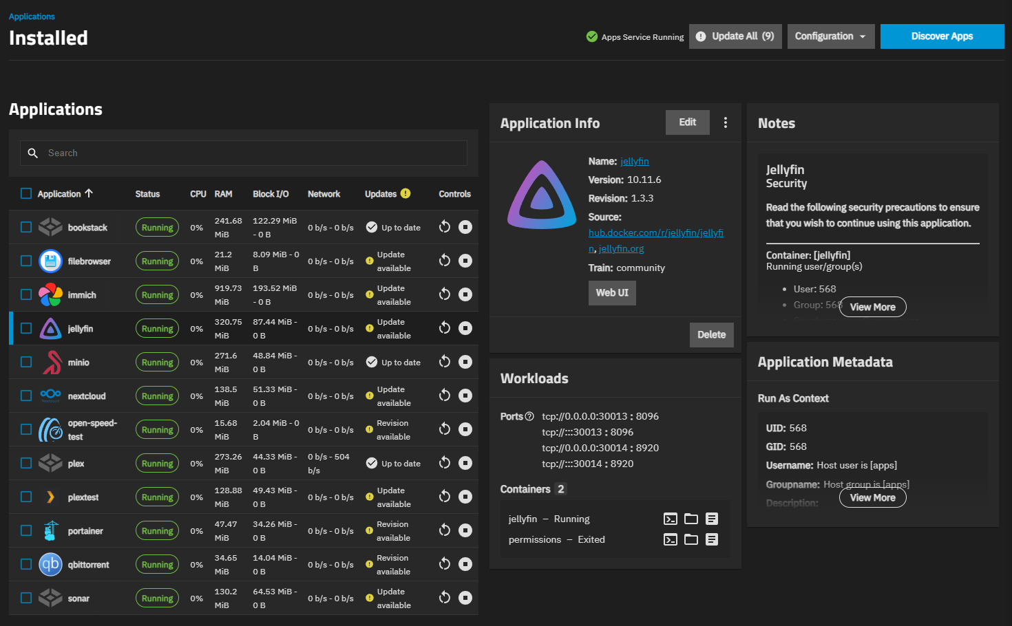 See the TrueNAS Applications Market for the latest details about apps available within TrueNAS!