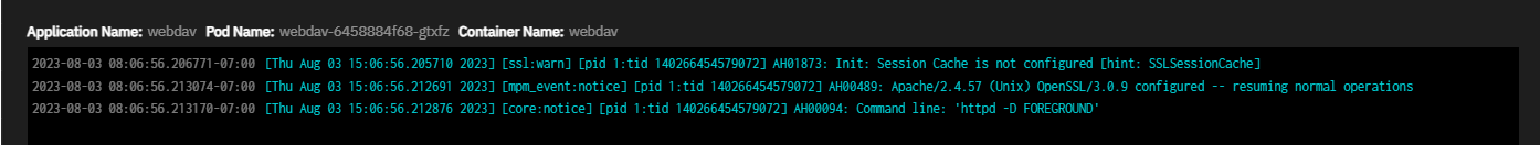 The View Logs Logs button also opens the Pod Logs screen for the app.