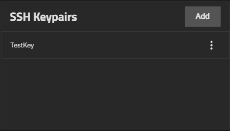The SSH Keypairs configuration screen displays the same settings for both add and edit options. Click Add to open a new configuration form, or click on an existing key pair to open the configuration screen populated with the settings for the selected key pair.