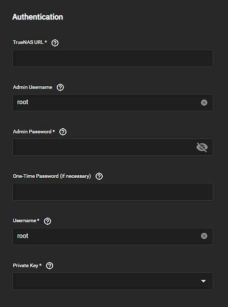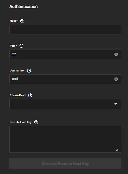 | Discover Remote Host Key | Click to connect to the remote system and attempt to copy the key string to the related TrueNAS field. |
