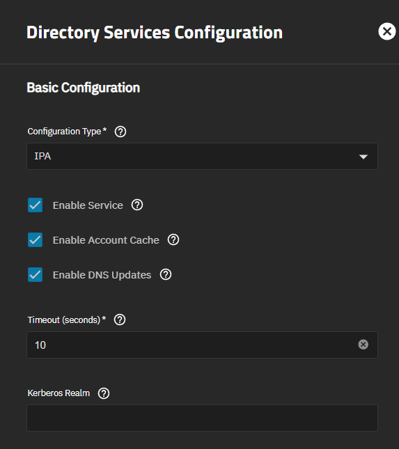 Go to Credentials > Directory Services and click Configure Directory Services to open the Directory Services Configuration form.