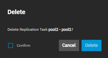 TrueNAS always preserves the latest snapshot so replication can resume later. If you delete a dataset or zvol on the source, you must manually delete the replicated dataset or zvol and the most recent snapshot on the destination.