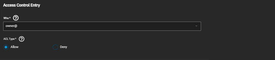 There are two Access Control Entry settings, Who and ACL Type.