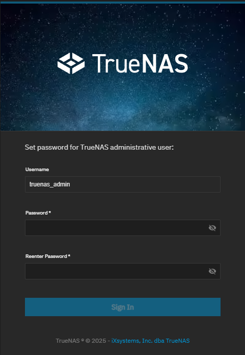 After setting up the truenas_admin user from one of the scenarios documented above, enter truenas_admin and the password to log in.