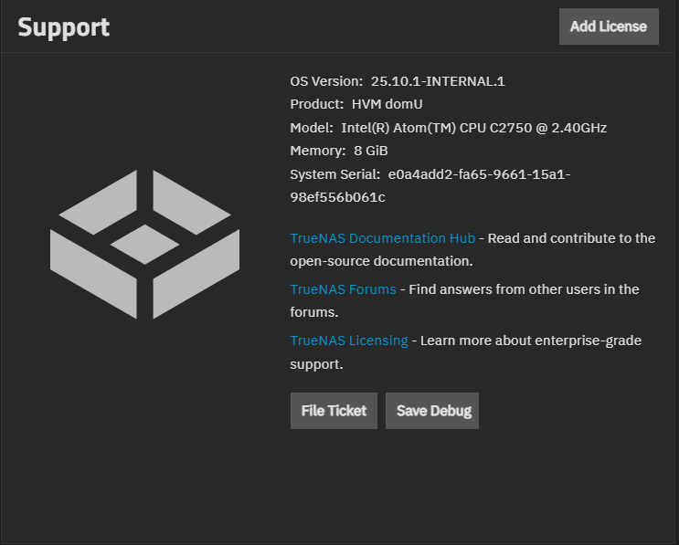 When reporting an issue, download a system debug file taken immediately following the issue occurrence. This captures the system configuration information and logs the TrueNAS team needs to help resolve your issues.