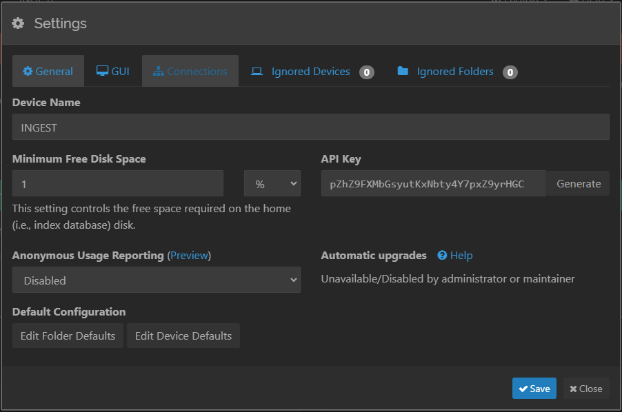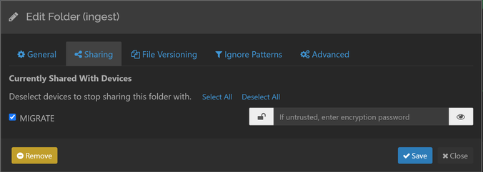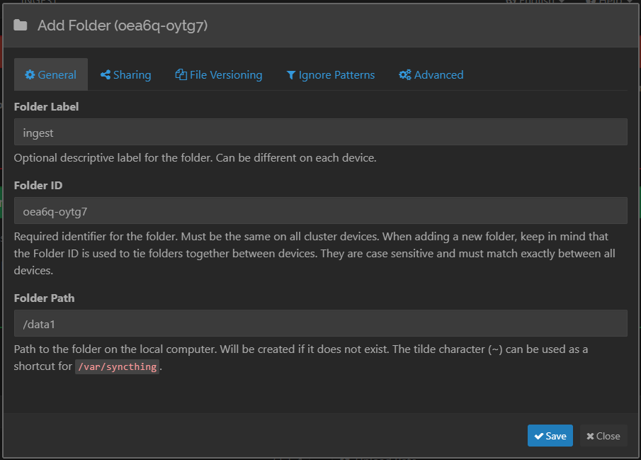 b. To avoid name conflicts, use a unique name to indicate this Syncthing instance is mounting the remote share. For example Syncthing-ingest.