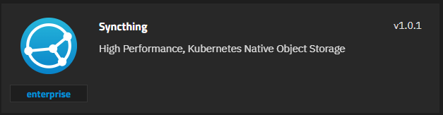 a. Go to Apps > Discover Apps, locate the Syncthing enterprise app widget. Ensure the widget reflects the Enterprise train version of the app.