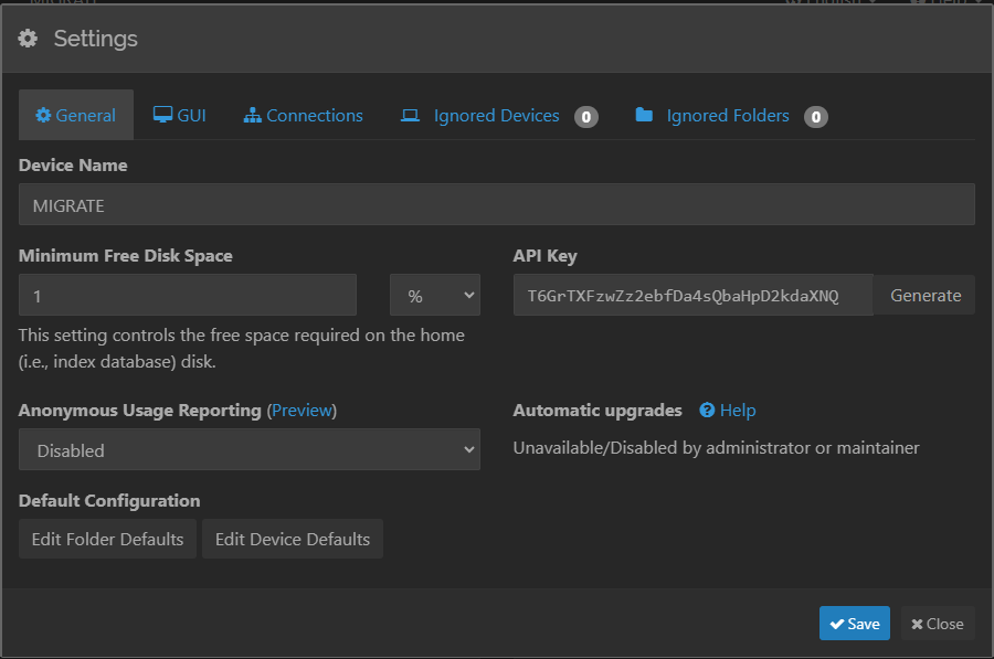 b. To avoid name conflicts, use a unique name to indicate this Syncthing instance is writing to a local dataset. For example Syncthing-migrate.
