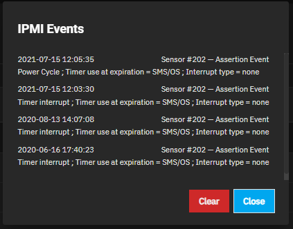 | Manage | Opens the IPMI manager in a new browser tab where users can communicate with the server without having direct access to the hardware. |