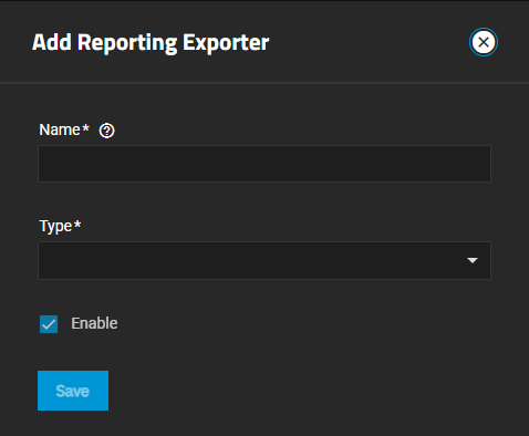 Select Enable to send reporting metrics to the configured exporter instance. Clearing the checkmark disables the exporter without removing configuration.