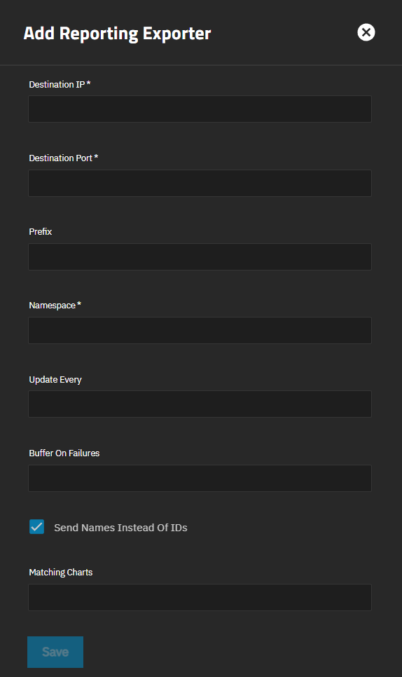 Enter a unique name for the exporter configuration in Name. When configuring multiple exporter instances, give each a distinct name.