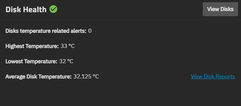 To see information on each disk on the system, click View Disks on the Disk health widget