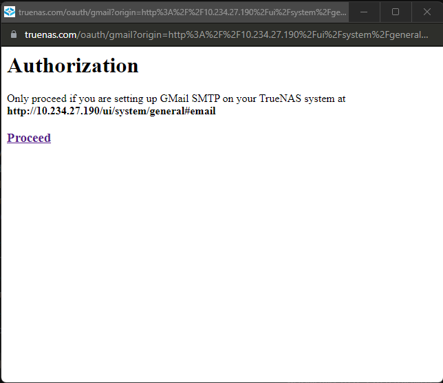 To set up the system email using Gmail OAuth, use the TrueNAS web UI to log in to your Gmail account.