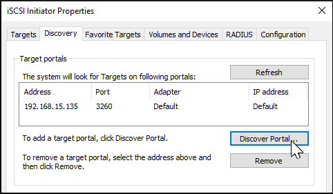 To access the data on the iSCSI share, clients need to use iSCSI Initiator software. An iSCSI Initiator client is pre-installed in Windows 7 to 10 Pro, and Windows Server 2008, 2012, and 2019. Windows Professional Edition is usually required. First, click the Start Menu and search for the iSCSI Initiator application. Next, go to the Configuration tab and click Change to replace the iSCSI initiator with the name created earlier. Click OK. Next, switch to the Discovery Tab, click Discover Portal, and type in the TrueNAS IP address. If TrueNAS changed the port number from the default 3260, enter the new port number. If you set up CHAP when creating the iSCSI share, click Advanced…, set Enable CHAP log on, and enter the initiator name and the same target/secret set earlier in TrueNAS. Click OK. Go to the Targets tab, highlight the iSCSI target, and click Connect. After Windows connects to the iSCSI target, you can partition the drive. Search for and open the Disk Management app. The current state of your drive should be unallocated. Right-click the drive and click New Simple Volume…. Complete the wizard to format the drive and assign a drive letter and name. Finally, go to This PC or My Computer in File Explorer. The new iSCSI volume should display under the list of drives. You should now be able to add, delete, and modify files and folders on your iSCSI drive.Click here for more information